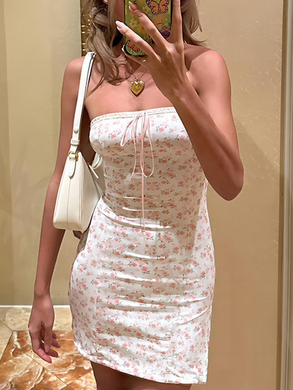 Ditsy Floral Print Tie Back Bandeau Mini Dress