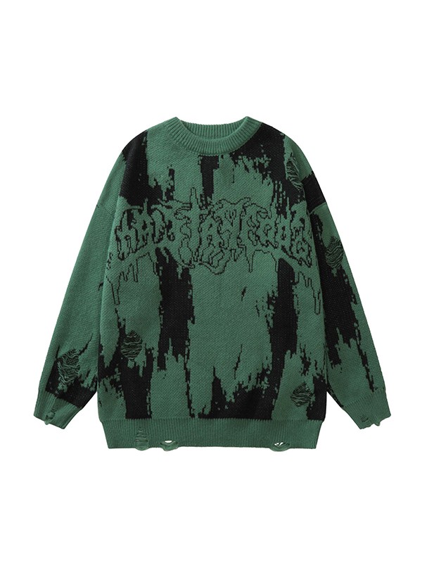 Men’s Jacquard Distressed Pullover Sweater