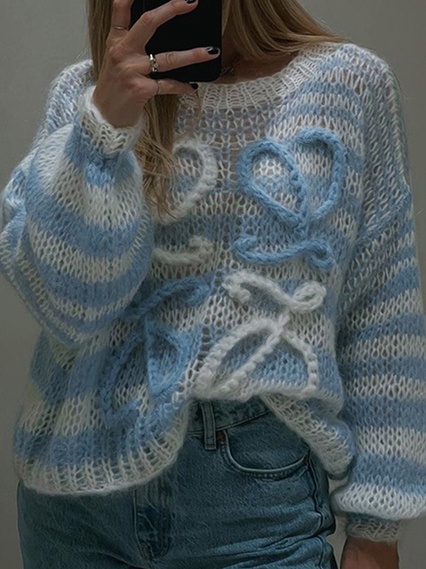 Stripe Crochet Baggy Sweater