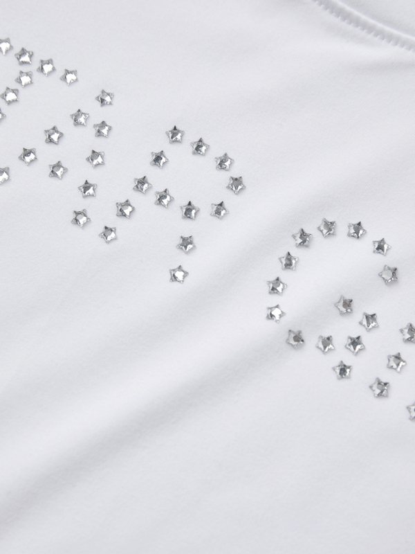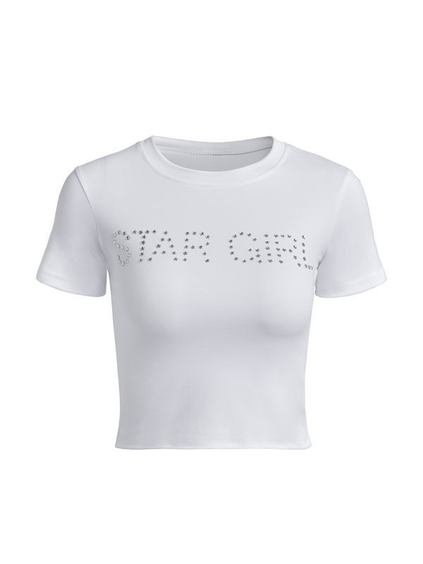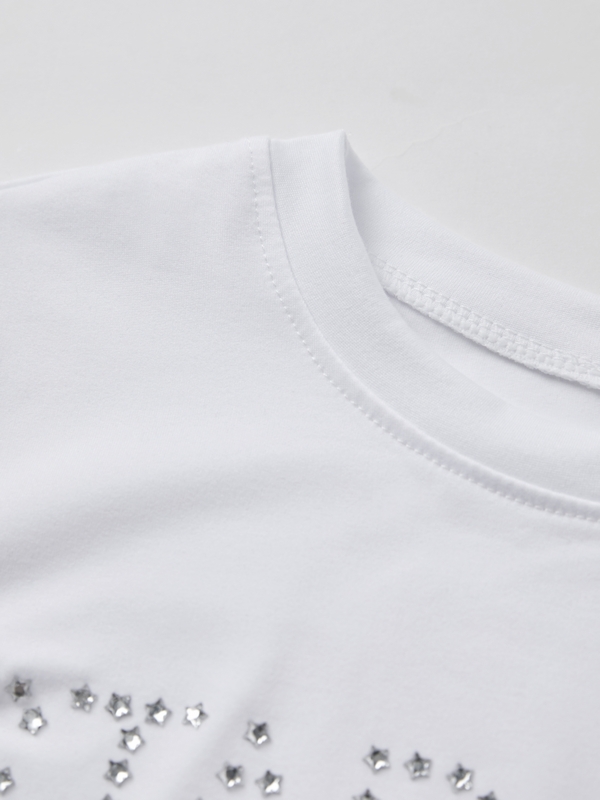 Be the first to review “Letter Rhinestone Print Short Sleeve Tee”