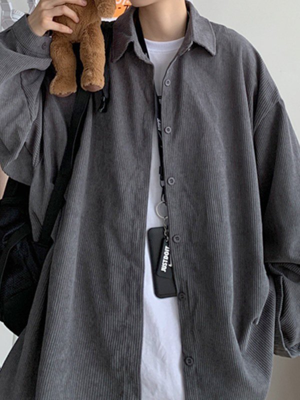 Description: This staple shirt is perfect for cool weather wardrobe. Crafted from corduroy fabric, cuts to a relax silhouette, features drop shoulders and front button fasten design. Get yourself warm with these comfy shirts.