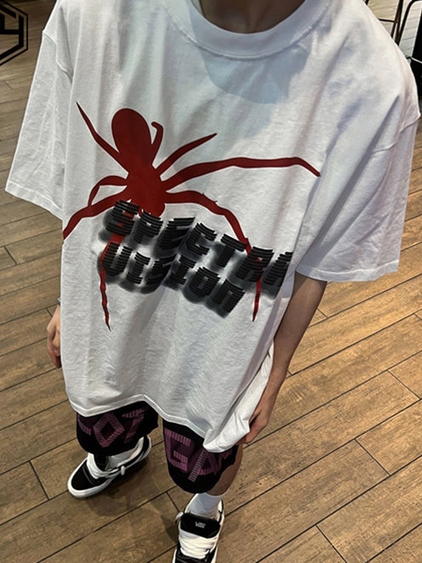 Style: Casual/Street/Vintage/Hip Pop/PunkFabric Content: CottonFit Type: Loose FitNeckline: Crew NeckSleeve Length: Short Sleeve