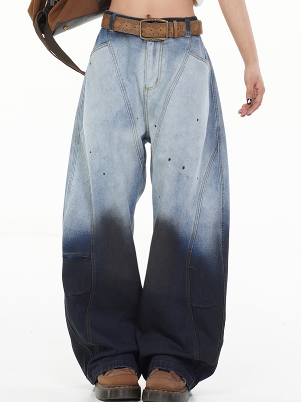 Men’s Vintage Wash Raw Trim Loose Jeans