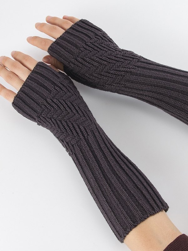 Fingerless Jacquard Ribbed Knit Arm Warmer