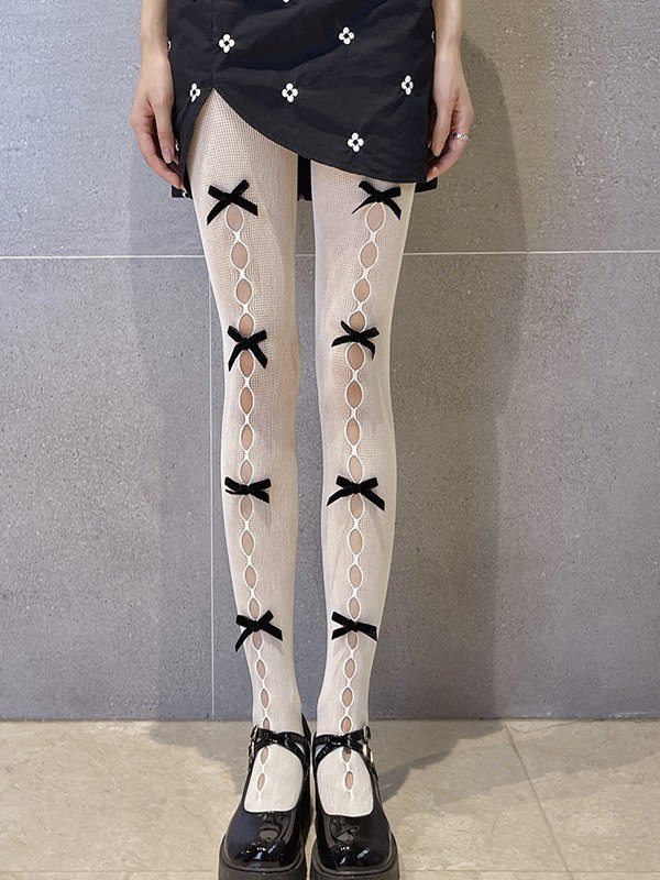 Bow Embellish Cutout Tights